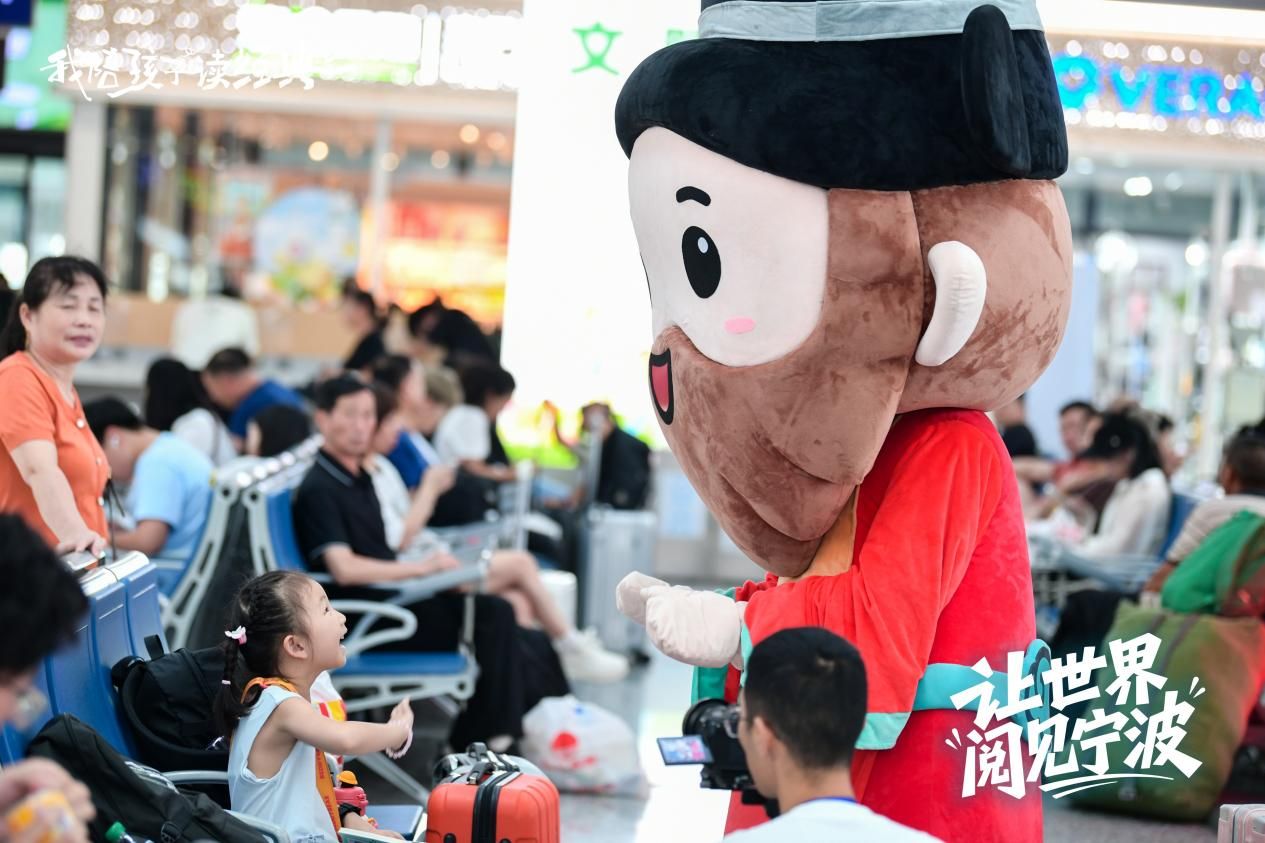 快閃活動中,天一閣“閣主大大”人偶一出現(xiàn)就成為了全場焦點,“奶呼呼”的卡通形象吸引著孩子們紛紛上前擊掌、合影?!伴w主大大”與孩子們親切互動,候車大廳里回蕩著陣陣歡聲笑語。