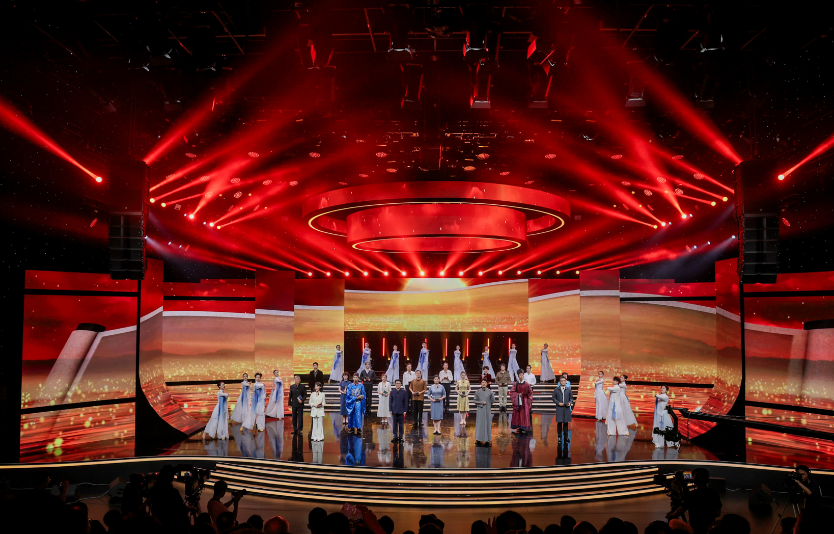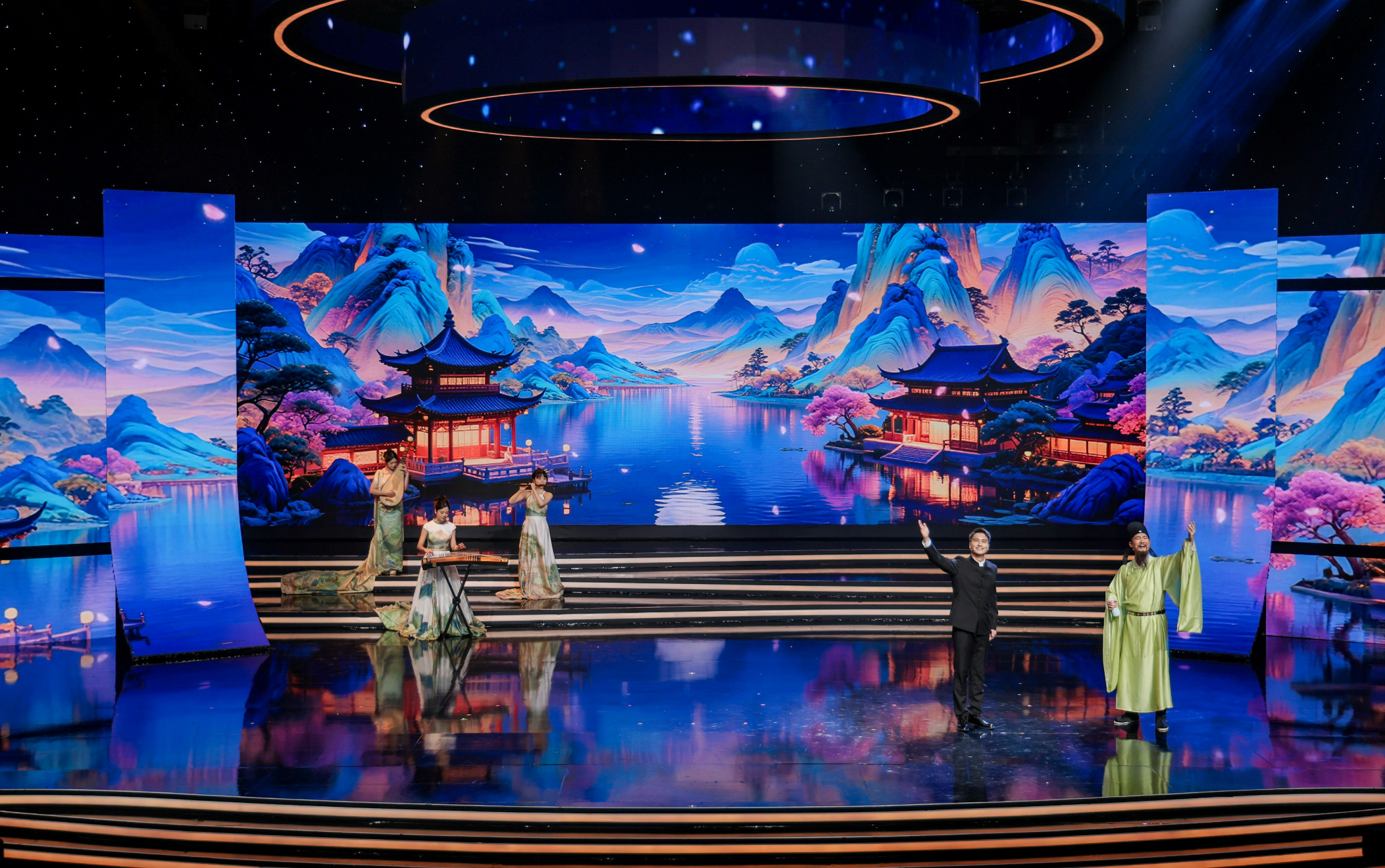 9月5日晚,活動在寧波廣電集團1200平米演播廳舉行。以朗誦為核心載體,有機融合音樂、舞蹈、戲曲等多元藝術(shù)形式,通過“動態(tài)書頁”與“海浪交織”的舞美設(shè)計,營造出“聲浪入海,文韻流芳”的文化意境,生動展現(xiàn)中華文化底蘊與時代精神。