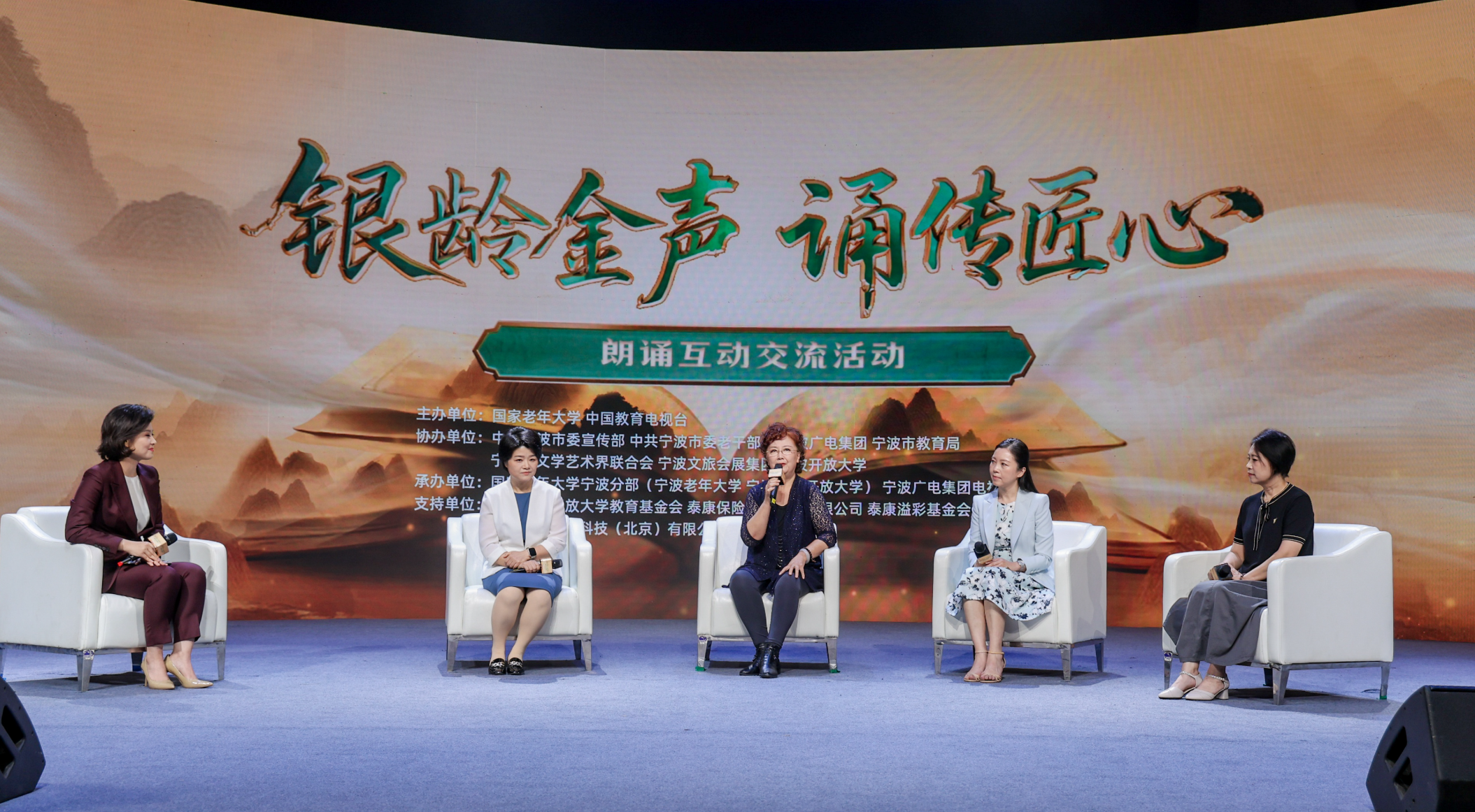 9月5日下午,朗誦互動交流活動在寧波廣電集團600平米演播廳舉行。活動以“主旨報告+專業(yè)分享+現(xiàn)場演繹+互動交流”四大板塊為框架,姚喜雙教授發(fā)表主旨演講,趙靜等嘉賓圍繞“朗誦與老年生活”主題展開深度對話,構(gòu)建起一座貫通經(jīng)典文化與銀齡風(fēng)采的藝術(shù)橋梁。現(xiàn)場金句頻現(xiàn),氛圍熱烈,讓參與活動的銀齡朗誦愛好者們品味語言藝術(shù)的雋永魅力,收獲滋養(yǎng)心靈的珍貴啟迪。