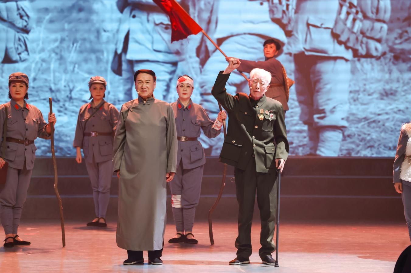 活動(dòng)執(zhí)行團(tuán)隊(duì)緊緊圍繞“紅色文化傳承與青年思政教育”深度融合的核心目標(biāo),在極短時(shí)間內(nèi)完成了方案設(shè)計(jì)、節(jié)目創(chuàng)編、舞臺(tái)視覺及嘉賓對(duì)接等全流程準(zhǔn)備工作。節(jié)目編排組深入挖掘退役軍人特別是軍休干部的紅色經(jīng)歷,創(chuàng)作了涵蓋“烽火記憶·山河不屈”“星火燎原·覺醒年代”“強(qiáng)國(guó)有我·薪火甬傳”三個(gè)篇章的節(jié)目體系,通過沉浸式情景表演《信仰的力量》、歌曲聯(lián)奏《烽火長(zhǎng)歌》、自編自導(dǎo)跨越時(shí)空的對(duì)話《四明家書》及寧波大學(xué)退役大學(xué)生光榮返校儀式等多種節(jié)目形式,實(shí)現(xiàn)了紅色精神從“被動(dòng)聆聽”到“主動(dòng)共鳴”的有機(jī)轉(zhuǎn)化。