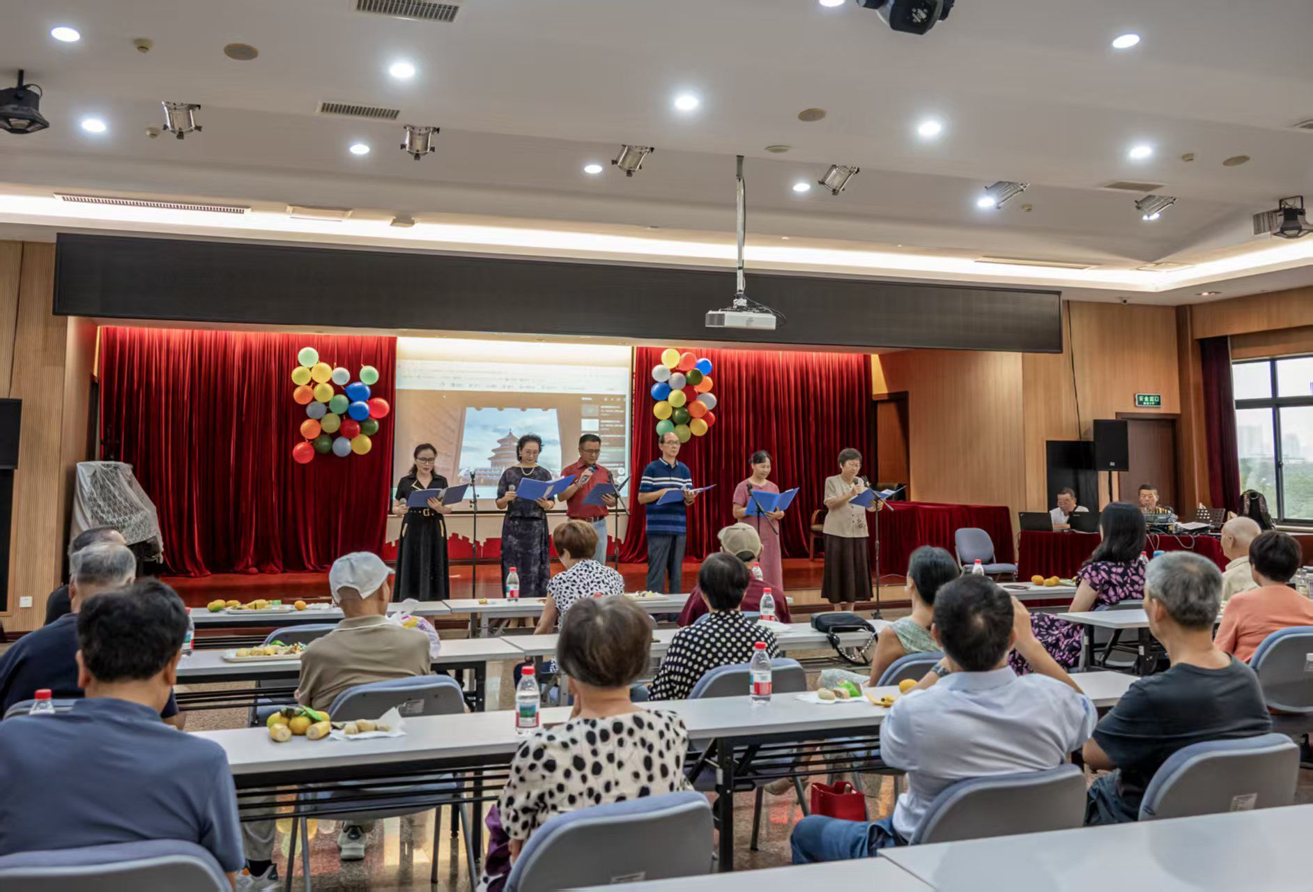 由退休第二黨支部組建的《歲月之聲》藝術(shù)團(tuán)花了一個(gè)多月時(shí)間反復(fù)排練精心準(zhǔn)備。排練期間正值高溫酷暑,老同志們不懼路途遠(yuǎn)近,趕到市老干部活動(dòng)中心排練,最終呈現(xiàn)了一臺(tái)精彩的朗誦演唱節(jié)目。他們用高亢的歌聲贊美偉大的祖國(guó),用經(jīng)典的古詩(shī)詞品味中秋團(tuán)圓的美好和向往,用誠(chéng)摯的情感傳遞人間重晚情的溫暖和關(guān)懷。一個(gè)多小時(shí)的精彩表演,老同志們掌聲不斷、笑聲迭起,其樂(lè)融融。