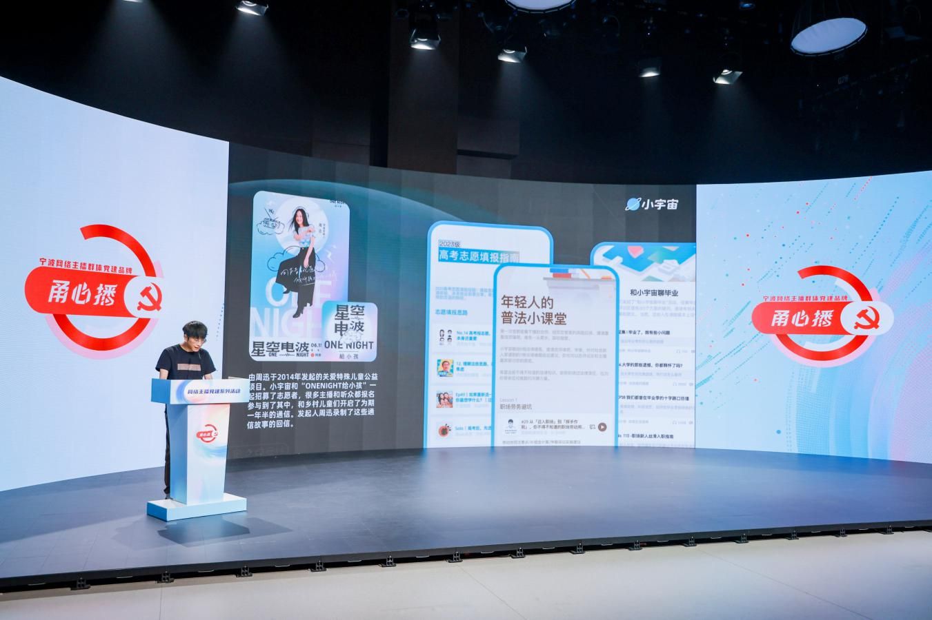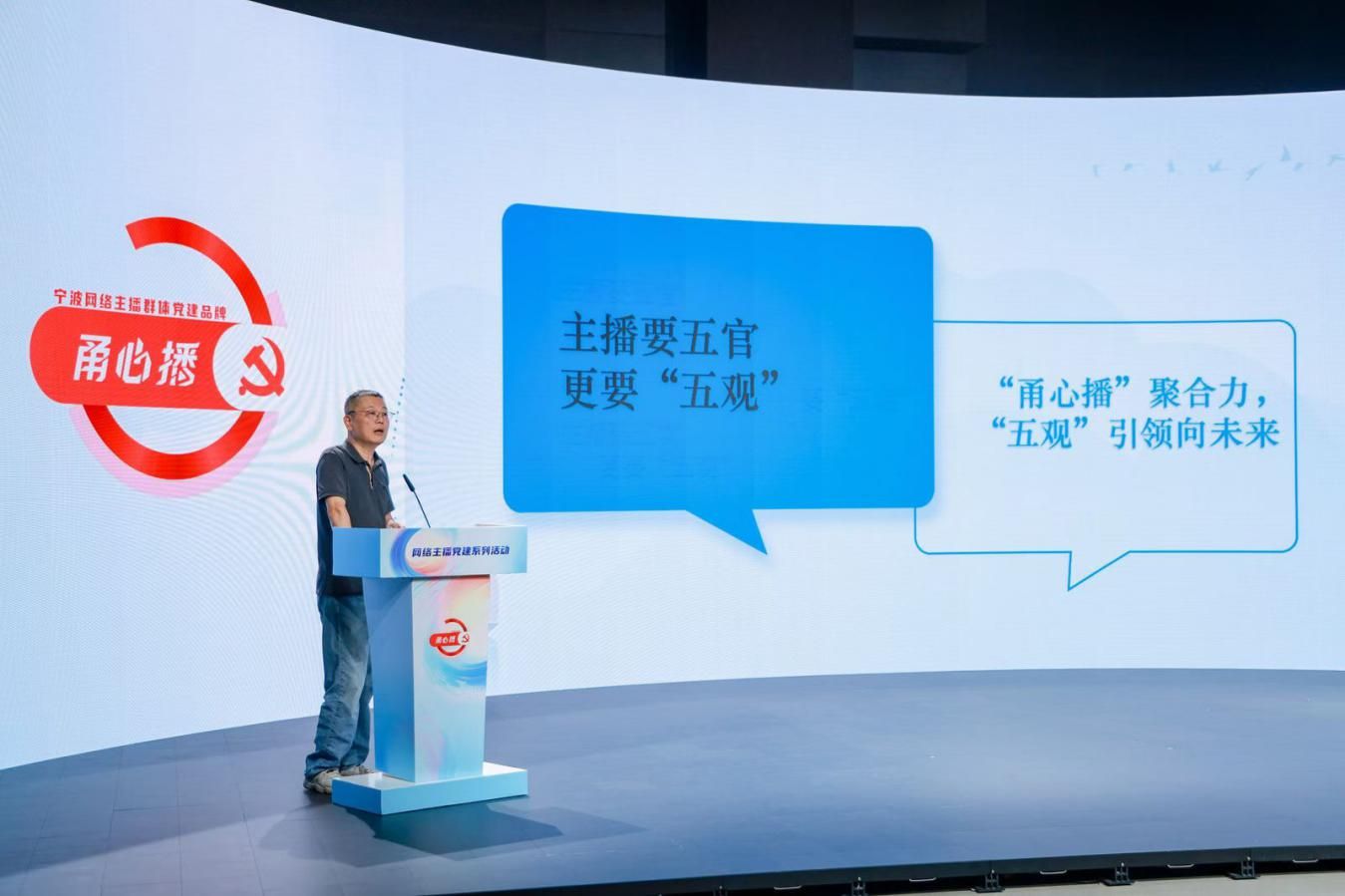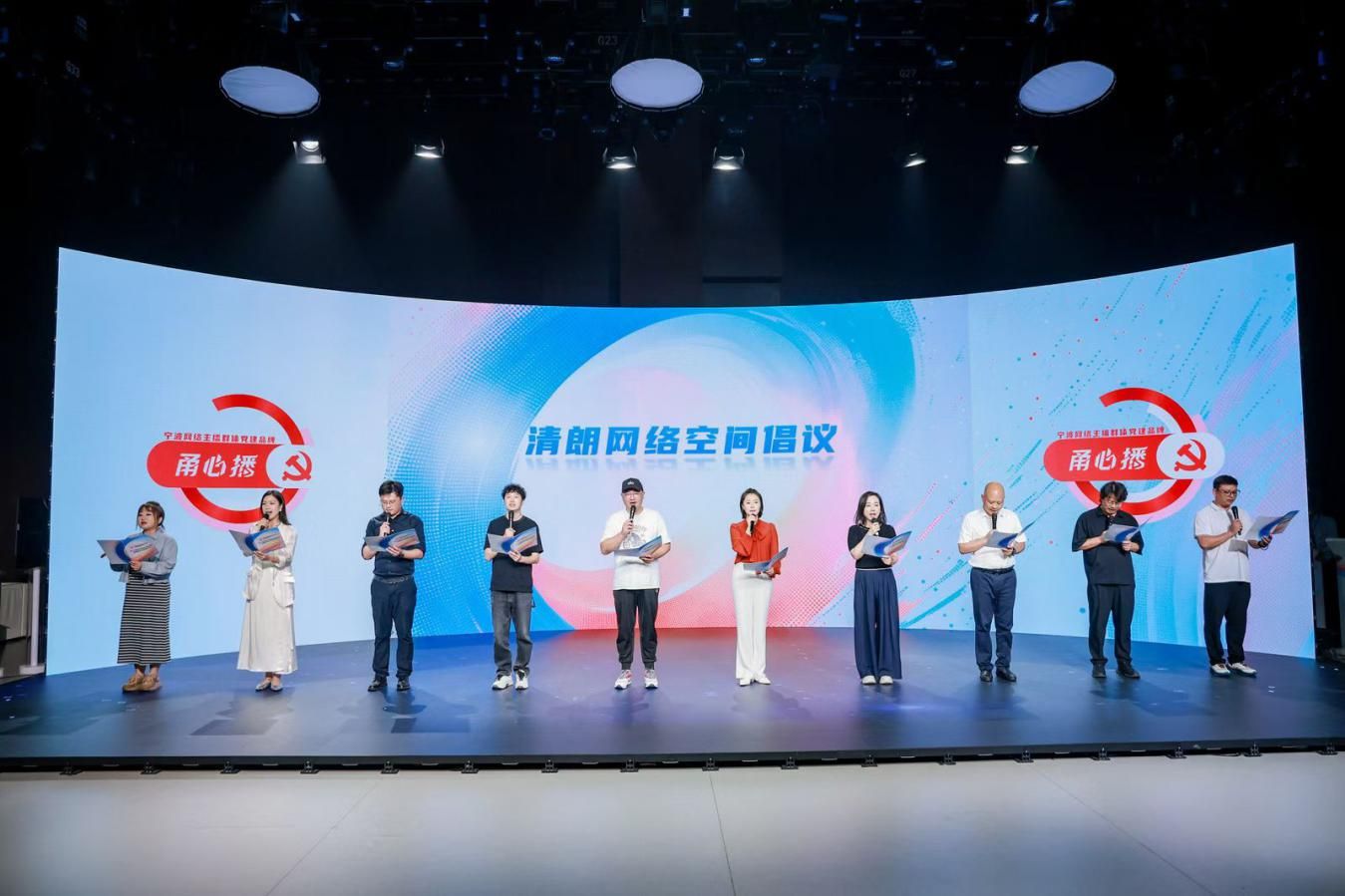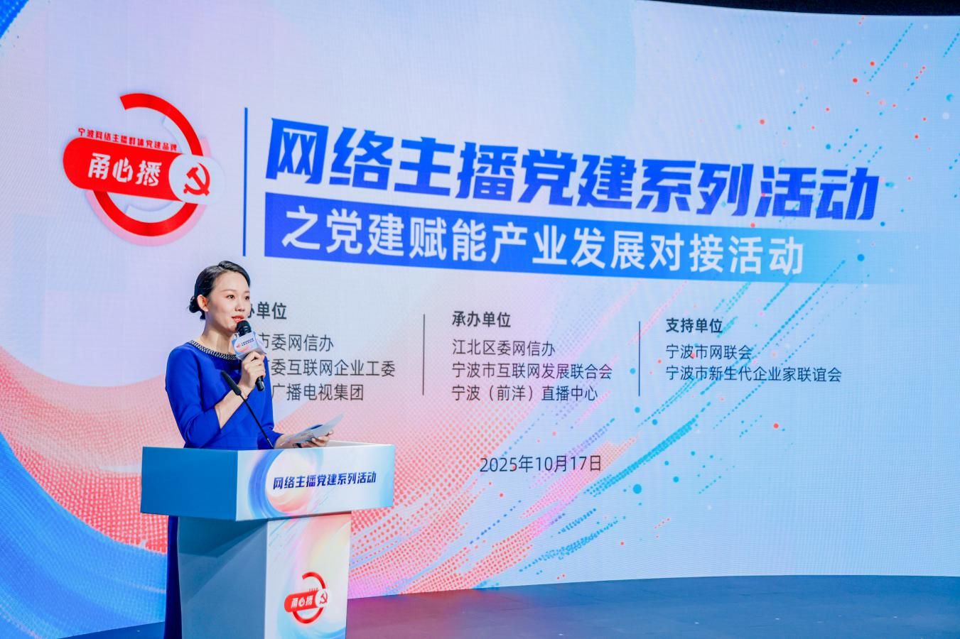 10月17日,“甬心播”網(wǎng)絡(luò)主播黨建系列活動(dòng)在寧波廣電集團(tuán)XR演播廳舉行,寧波市網(wǎng)絡(luò)主播群體黨建品牌“甬心播”正式發(fā)布。活動(dòng)由寧波市委網(wǎng)信辦、市委互聯(lián)網(wǎng)企業(yè)工委、寧波廣電集團(tuán)、市委社會(huì)工作部聯(lián)合主辦,來(lái)自全市各區(qū)(縣、市)網(wǎng)信部門負(fù)責(zé)人、MCN機(jī)構(gòu)代表、網(wǎng)絡(luò)主播、重點(diǎn)互聯(lián)網(wǎng)企業(yè)代表共同參與。