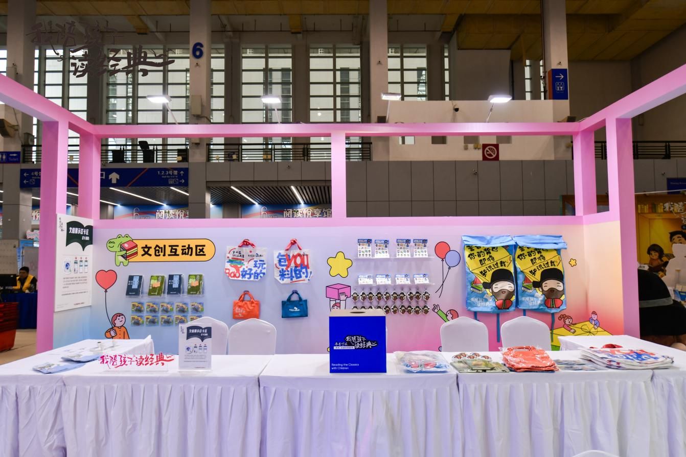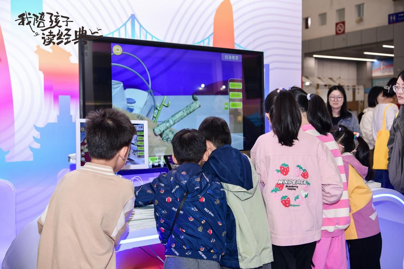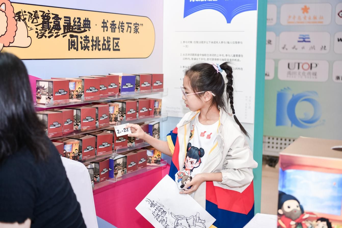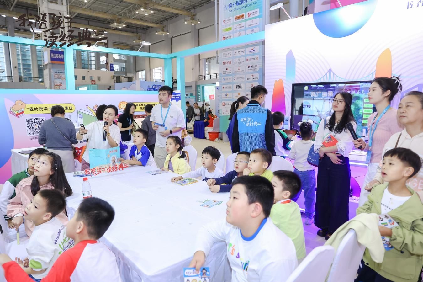 位于第十屆浙江書展6號(hào)館的“我陪孩子讀經(jīng)典”少兒館以“經(jīng)典閱讀+互動(dòng)體驗(yàn)”為核心,打造集優(yōu)質(zhì)讀物、文化傳承與趣味互動(dòng)于一體的親子閱讀空間,讓經(jīng)典浸潤(rùn)童心、閱讀成為家庭共同成長(zhǎng)的美好紐帶。邀請(qǐng)了30多家優(yōu)秀出版商專臺(tái)布置,精選中外經(jīng)典童話、傳統(tǒng)國(guó)學(xué)啟蒙、當(dāng)代優(yōu)質(zhì)繪本、科普百科、兒童文學(xué)等各類別適齡好書,營(yíng)造豐富多元的閱讀環(huán)境,也設(shè)立“我陪孩子讀經(jīng)典”全民閱讀展示區(qū),展示200種經(jīng)典書單并通過(guò)圖文、視頻、陳列、互動(dòng)等形式,生動(dòng)呈現(xiàn)親子閱讀實(shí)踐案例、共讀心得與成長(zhǎng)故事,激發(fā)更多家庭參與熱情與共鳴。其中“我陪孩子讀經(jīng)典”少兒館互動(dòng)區(qū)由文創(chuàng)互動(dòng)區(qū)、“我的悅讀主張”征集區(qū)、“盲盒尋經(jīng)典?書香傳萬(wàn)家”閱讀挑戰(zhàn)區(qū)、數(shù)字閱讀互動(dòng)區(qū)、親子拓印體驗(yàn)區(qū)五大核心互動(dòng)區(qū)組成,共同為親子家庭打造了豐富的閱讀體驗(yàn)。