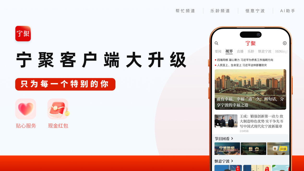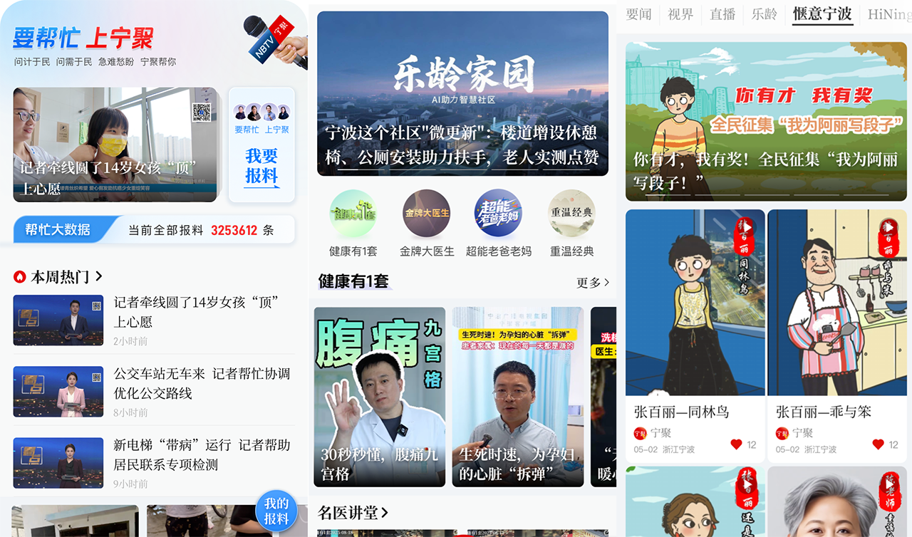 改版后,寧聚客戶端新增四大特色頻道,覆蓋多元用戶需求?!皫兔︻l道”搭建民生服務(wù)閉環(huán),為市民提供生活求助類貼心幫扶;“樂齡頻道”貼合中老年用戶需求和習(xí)慣,推出實(shí)用資訊、活動預(yù)約等服務(wù);“愜意寧波”頻道深挖本土文脈,用鄉(xiāng)音鏈接鄉(xiāng)情,傳遞寧波煙火氣;“國傳頻道”以原創(chuàng)外語短視頻為載體,向世界講述寧波故事。