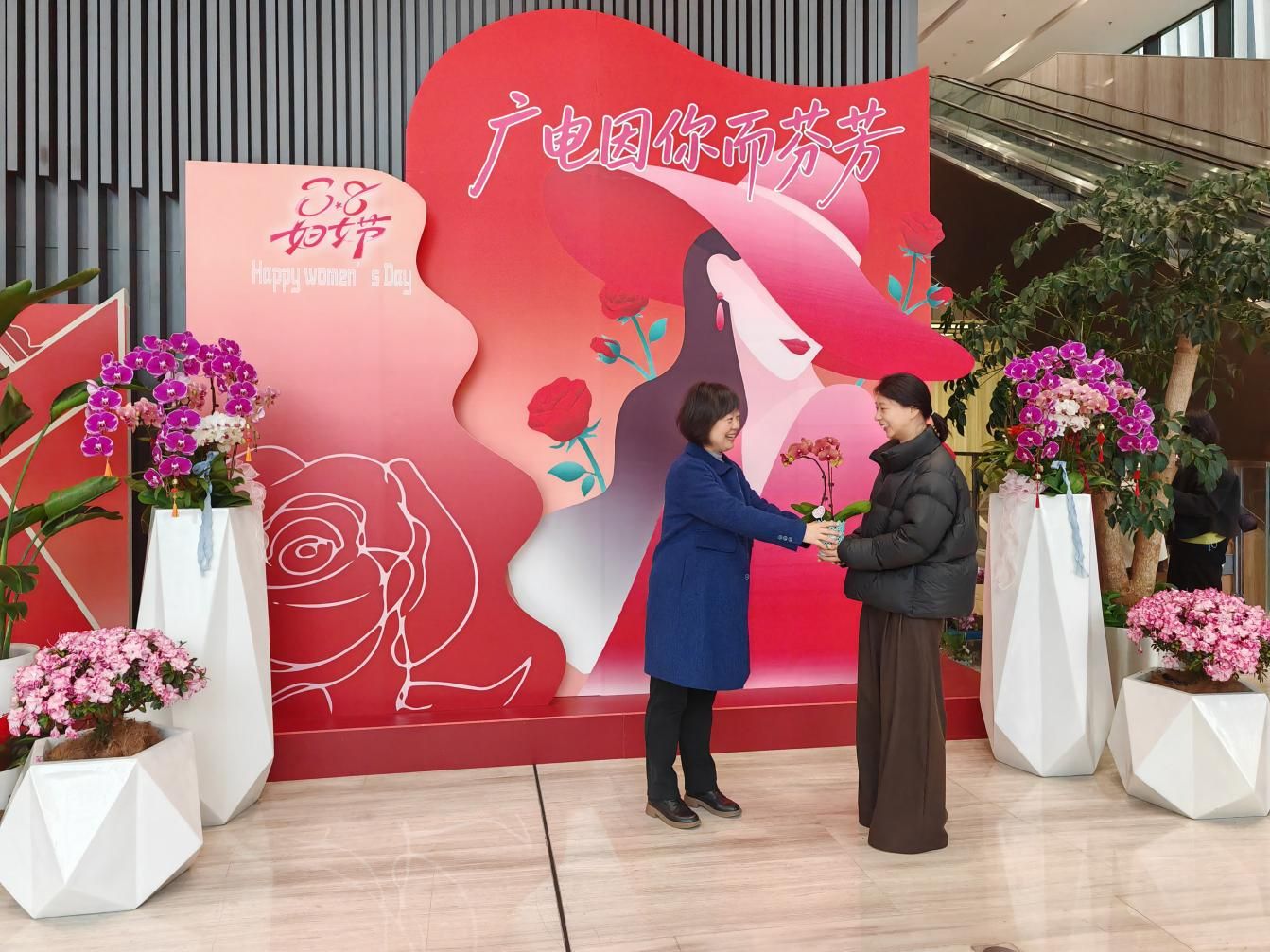 “致敬她力量 鮮花送祝?!?,一盆盆鮮花被送到每一位女職工手中,傳遞集團(tuán)的誠摯問候與美好祝愿。