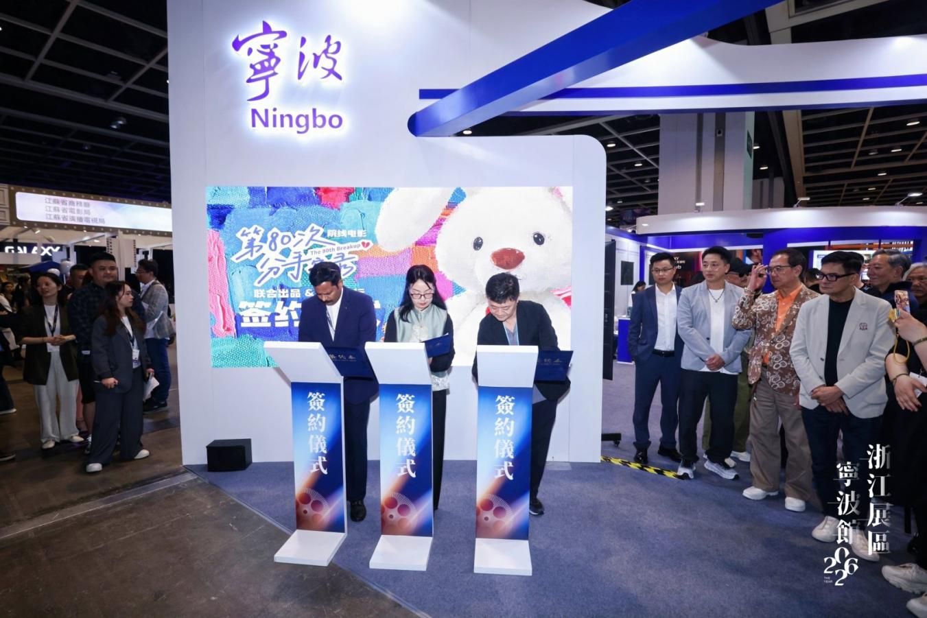 寧波影視藝術(shù)有限責(zé)任公司在展會現(xiàn)場就院線電影《第80次分手實錄》與香港環(huán)鷹時代傳媒有限公司簽署聯(lián)合出品協(xié)議,并與印度新知價值制片有限公司、韓國十月影業(yè)達成海外版權(quán)發(fā)行代理合作。兩項重磅簽約,為影片后續(xù)創(chuàng)作制作、國際宣發(fā)與全球落地奠定堅實基礎(chǔ),也進一步深化了甬港影視產(chǎn)業(yè)聯(lián)動,助力浙產(chǎn)電影拓寬海外市場渠道。越南知名影視公司總監(jiān)裴氏燕專程駐足影視公司展位,詳細(xì)了解集團出品的各類影視劇作品,對內(nèi)容品質(zhì)高度認(rèn)可,并明確表達引進發(fā)行意向,為寧波影視內(nèi)容進入越南市場、拓展東南亞版圖帶來新契機。同時,影視公司此次帶到香港的《風(fēng)從海上來》等擬制作品,受到國內(nèi)同行的高度關(guān)注,并與浙文影業(yè)初步達成共同出品的合作框架。