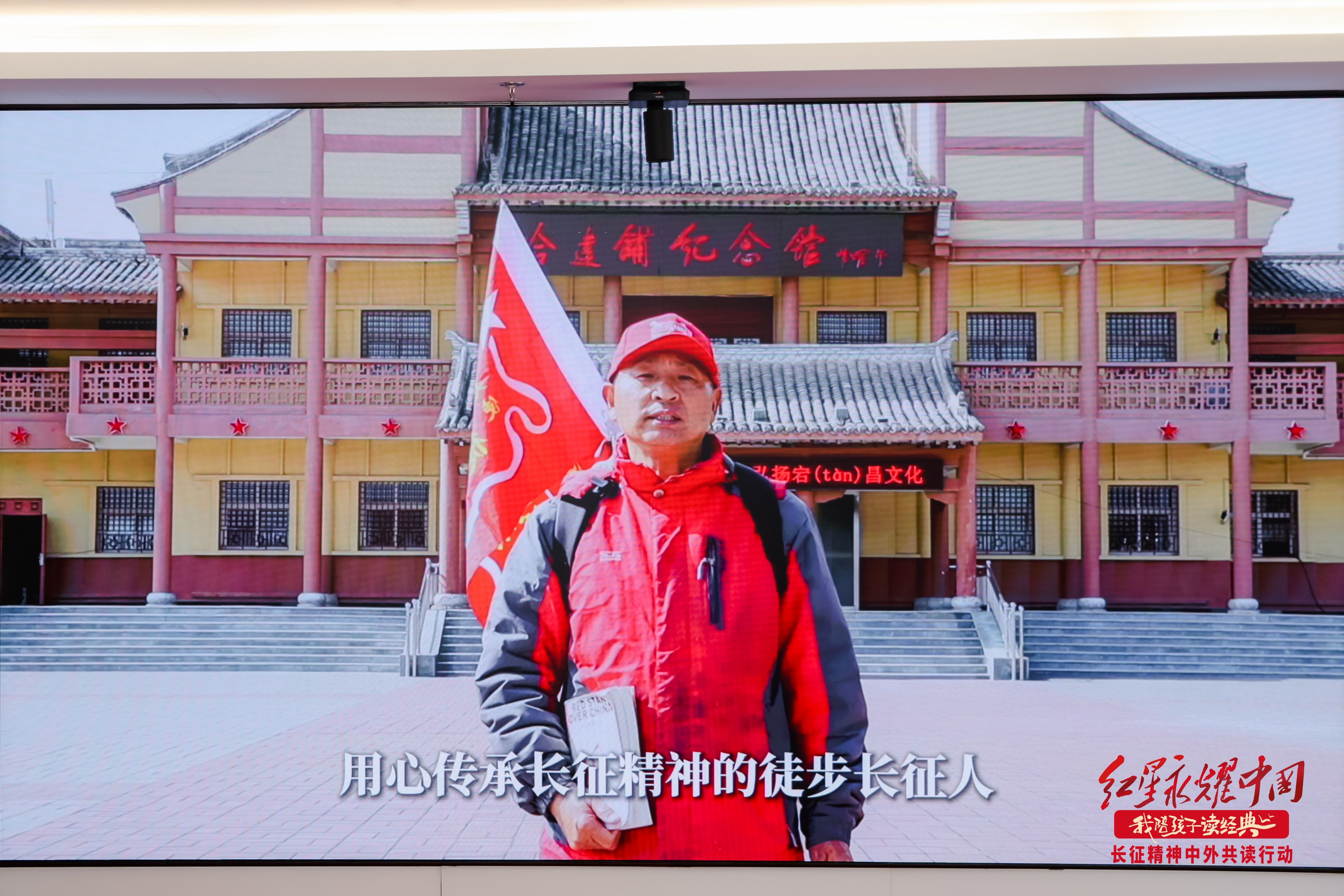 此外,距離北京千里之外,被譽(yù)為長征“加油站”的甘肅省哈達(dá)鋪鎮(zhèn),一場溫馨的閱讀接力同步上演。伴讀人黃振貴通過視頻分享了在長征路上的閱讀感悟,并將長征經(jīng)典書籍贈(zèng)送給當(dāng)?shù)貙W(xué)生。