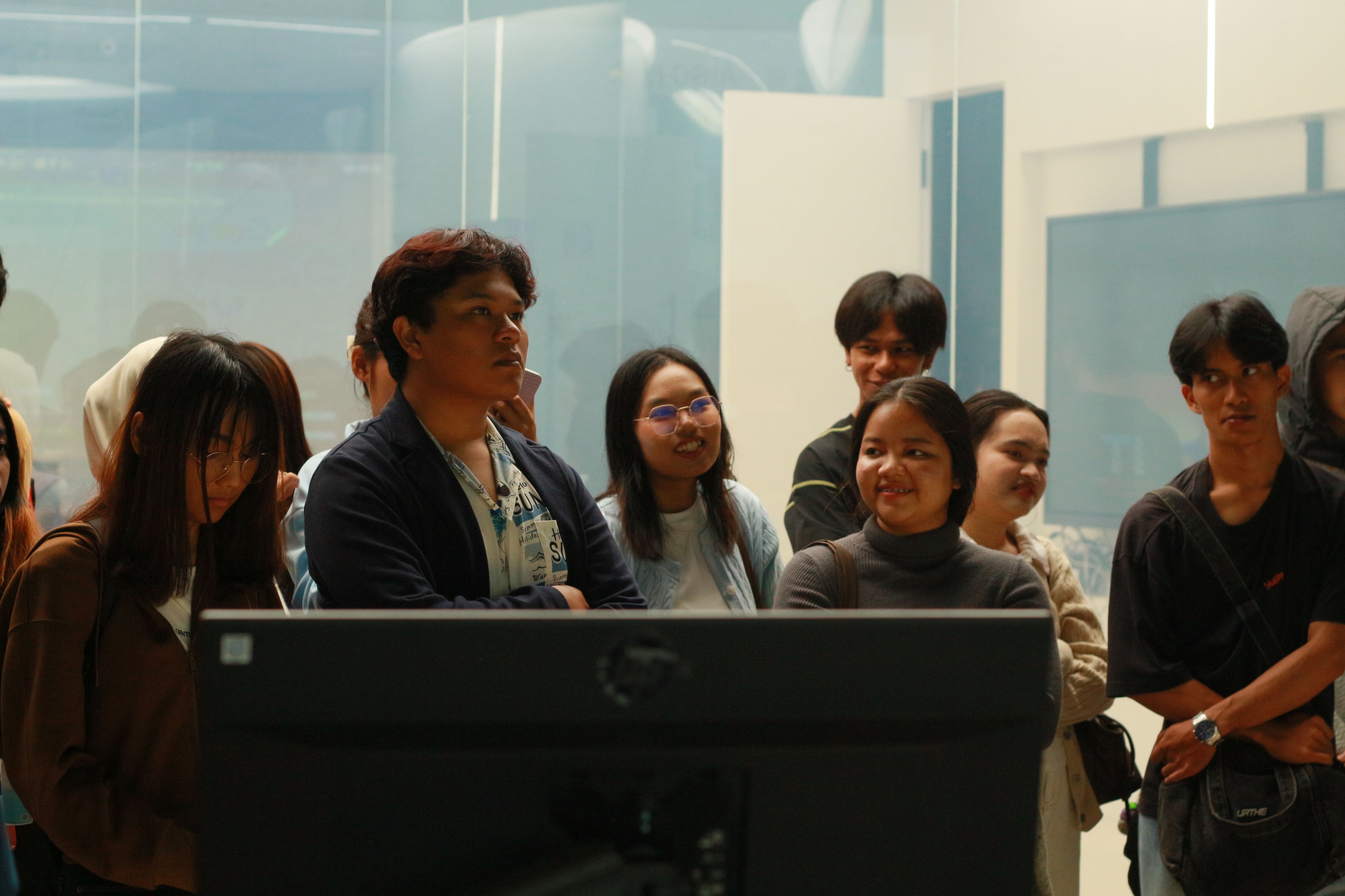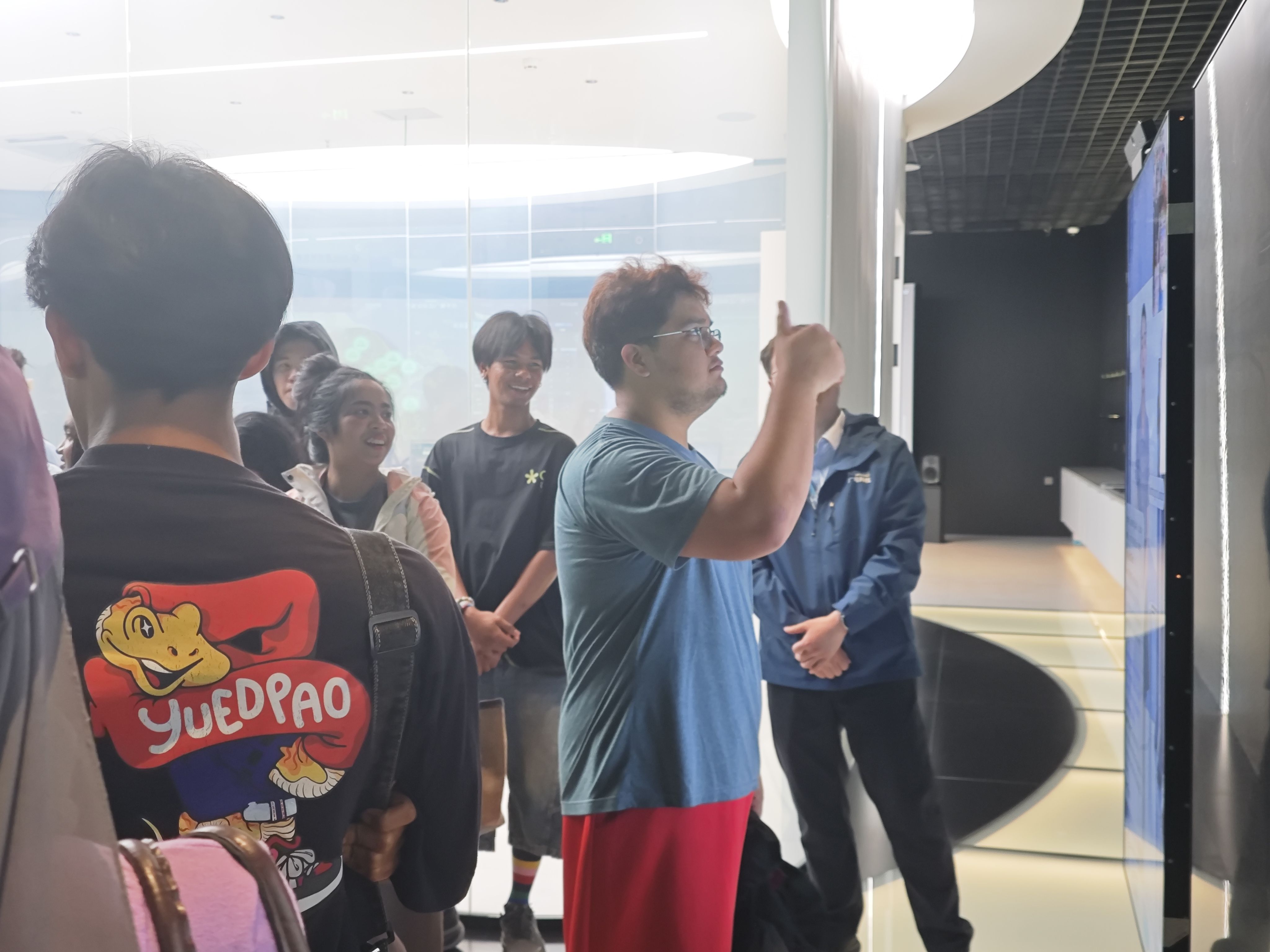 本次活動(dòng)聚焦傳媒數(shù)字化轉(zhuǎn)型、人工智能應(yīng)用、網(wǎng)絡(luò)空間安全等內(nèi)容,以沉浸式參觀、前沿技術(shù)演示、實(shí)景互動(dòng)體驗(yàn)等形式,呈現(xiàn)寧波廣電集團(tuán)在數(shù)字技術(shù)領(lǐng)域的創(chuàng)新成果,搭建起中泰青年學(xué)子交流互鑒、共學(xué)共進(jìn)的技術(shù)橋梁。大家先后參觀了寧波廣播電視史館、全景聲錄音棚、廣播直播區(qū),在歷史與現(xiàn)實(shí)的交匯中感受傳媒行業(yè)的迭代升級(jí)。