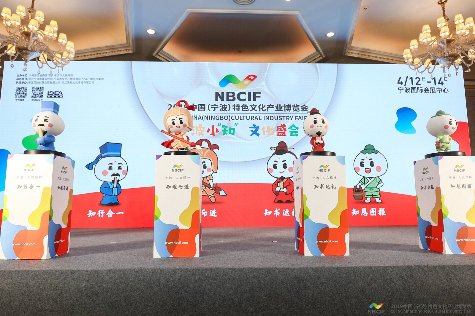 在本次推介會(huì)上,2019寧波文博會(huì)各大亮點(diǎn)一一揭曉,展會(huì)全新LOGO正式上線,官方吉祥物寧波小知驚喜亮相。寧波文博會(huì)的全新標(biāo)志由字母“N”和“B”,即寧波的拼音縮寫(xiě),及漢字“文”演化而來(lái)。通過(guò)字母與漢字的結(jié)合,使受眾容易將標(biāo)志與寧波文博會(huì)產(chǎn)生關(guān)聯(lián),具有極強(qiáng)的辨識(shí)度。標(biāo)志的主體結(jié)構(gòu)由三條不同形狀的線段組合,一方面體現(xiàn)寧波“三江匯聚”城市地理特色,另一方面展現(xiàn)出寧波“天一生水”的城市文化脈絡(luò)。通過(guò)元素提煉,標(biāo)志既像一只飛翔的海鷗,搏擊長(zhǎng)空;又像翻滾的海浪,永不停歇,符合寧波的城市氣質(zhì)?!皩幉ㄐ≈庇伤目罹哂写硇耘c辨識(shí)度的特色I(xiàn)P形象構(gòu)成,形象上以寧波最具代表性的傳統(tǒng)食物“湯圓”為設(shè)計(jì)創(chuàng)意,將流出的餡料和點(diǎn)于湯圓上的紅曲分別作為發(fā)型和眉心裝飾,進(jìn)行擬人化設(shè)計(jì)。而在擬人原型上,則選取了寧波歷史上的著名人物,來(lái)分別代表“知行合一”“知難而進(jìn)”“知書(shū)達(dá)禮”“知恩圖報(bào)”的城市人文精神,形成四個(gè)既一脈相承又風(fēng)格各異的吉祥物形象。