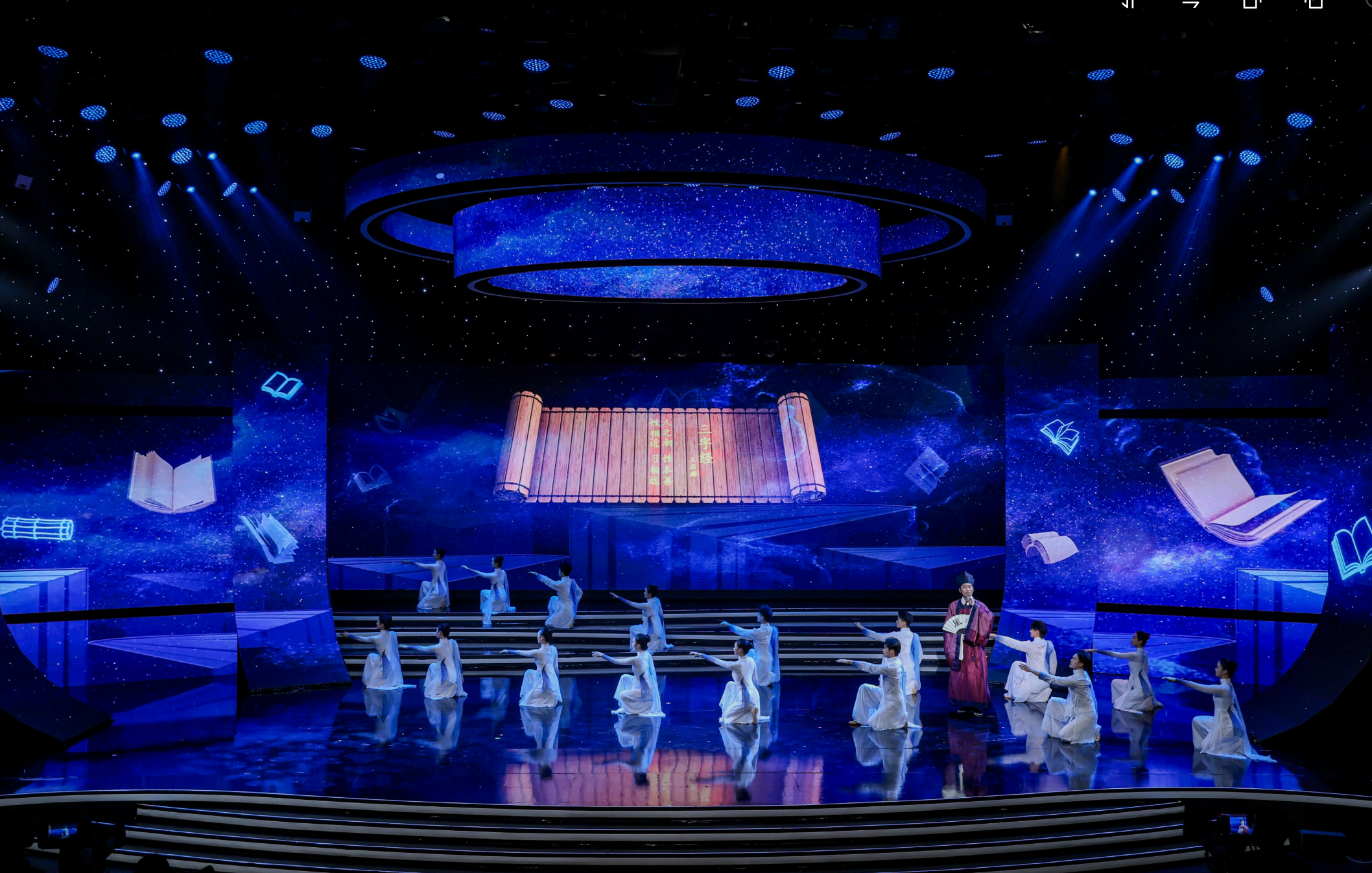 9月5日晚,活動在寧波廣電集團1200平米演播廳舉行。以朗誦為核心載體,有機融合音樂、舞蹈、戲曲等多元藝術(shù)形式,通過“動態(tài)書頁”與“海浪交織”的舞美設(shè)計,營造出“聲浪入海,文韻流芳”的文化意境,生動展現(xiàn)中華文化底蘊與時代精神。